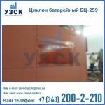 Батарейные циклоны модели БЦ-259 конструируются из нескольких металлических труб (выхлопных отводов), диаметр которых составляет около 26, 9 см. Элементы устанавливаются в параллельной плоскости и объединены корпусом с общей подводкой. Такие трубы предназначены для выхлопа и состоят из специальных заворачивающих лопаток, решетчатых элементов и опорных стоек футляра. Основную наружную панель оснащают патрубком для соединения и вибробункером, помимо этого, на панели устанавливают теплоизоляцию.