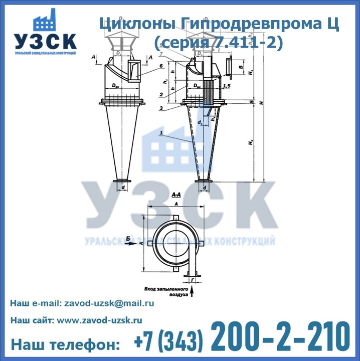 Циклоны Гипродревпрома Ц (серия 7.411-2) высокого качества можно купить в компании «УЗСК» в Щёлково. Наши специалисты предоставят всю необходимую информацию информацию и помогут с выбором модели циклона. Подробные технические характеристики, конструкцию, параметры, ассортимент и стоимость продукции можно также найти на сайте УЗСК.