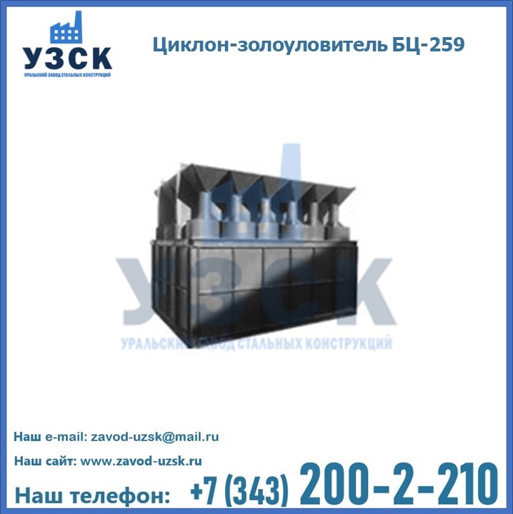 Если вы планируете купить то или иное оборудование, например, циклоны-золоуловители БЦ-259, то рекомендуем заказать данный товар на сайте УЗСК. Мы производим и реализуем продукцию высокого качества по приемлемой цене. Эксперты Уральского Завода Стальных Конструкций в Щёлково проконсультируют вас по всем вопросам, помогут сделать выбор и оформить заказ без лишних временных затрат. Мы гарантируем соответствие нашей продукции всем требованиям ГОСТ и ТУ, а также износостойкость и высокую производительность предлагаемого оборудования. Если требуется изготовить циклон нестандартных размеров, то такой вариант выполнения заказа тоже предусмотрен, так как предприятие имеет собственные производственные площади и надежных поставщиков. На все поставляемое или производимое оборудование имеются чертежи и прочая техническая документация. Заказать и купить циклоны или прочее оборудование высокого качества и по доступной цене можно через наш сайт или по указанному в разделе «Контакты» телефону.