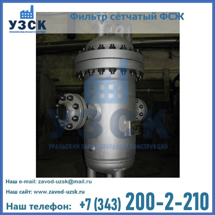 Очистку перекачиваемых жидкостей на предприятиях нефтяной, пищевой, горнорудной, фармацевтической и других отраслей промышленности эффективно выполнять с помощью жидкостного сетчатого фильтра — емкостное оборудование цилиндрической формы со съемной крышкой и элементом фильтрации внутри. Оснащенные им всасывающие линии насосных станций и установок защищены от проникновения твердых частиц в функциональные узлы гидравлической системы. Оборудование служит для перекачивания токсичных, агрессивных и иных эмульсий, суспензий, жидкостей. Купить фильтр сетчатый жидкостный ФСЖ в Щёлково с гарантией производителя предлагает «Уральский завод стальных конструкций». Мы выполняем проектирование и изготовление ФСЖ по индивидуальным требованиям (климатическая зона, транспортируемая жидкость).