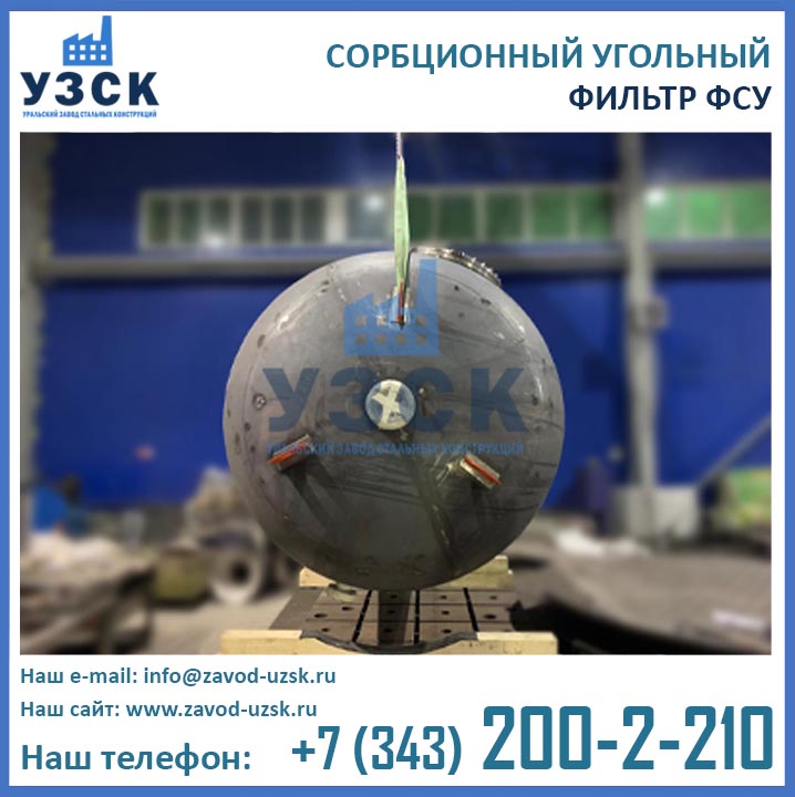 Качественную работу отопительных и промышленных котельных, линий по очистке конденсата и природных вод, электростанций обеспечивает фильтр сорбционный угольный типа ФСУ — вертикальный сосуд с одной камерой цилиндрической формы. Основное назначение оборудования состоит в глубокой очистке возвращаемого с производства конденсата от запахов, органических загрязнений и привкусов. Использование ФСУ в системах водоподготовки гарантирует очищение субстанции от масел, органических примесей, остатков нефтепродуктов до нормального значения — 0.52-1.0 мг/л. Купить в Щёлково угольные фильтры предлагает наш Уральский завод стальных конструкций. Мы выполняем производство ФСУ под нужды предприятия, возможно изготовление сорбционных фильтров ФСУ из нержавеющей стали включая корпус и внутренние устройства.