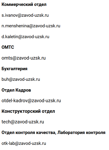 EMAIL : shhyolkovo@zavod-uzsk.ru